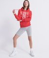Superdry Klassisches Varsity Athletics Hoodie für Damen. Dieses Hoodie ist mit einer Kängurutasche vorne, einer Kapuze mit Kordelzug und gerippten Abschlüssen an Bündchen und Saum versehen. Das Modell ist auf der Brust mit einem Superdry Logoprint verziert. Kombiniere dieses Hoodie in dieser Saison mit einem klassischen T-Shirt, Jeans und Sneakers.