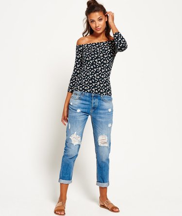 Schulterfreies Superdry Essentials Top für Damen. Dieses schulterfreie Basic gehört in jeden Kleiderschrank, denn es passt mit seinen 3/4-Ärmeln einfach zu allem. Abgerundet wird dieses schulterfreie Essentials Top mit einem Superdry Logoetikett am Saum.