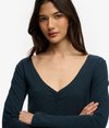 Les basiques n'ont pas à être ennuyeux. Notre haut à manches longues froncé Athletic Essential allie confort et élégance subtile, avec un col en V classique qui en fait la pièce idéale pour tous les jours. Avec sa coupe ajustée flatteuse et ses détails froncés, ce haut apporte une touche raffinée à votre garde-robe décontractée.