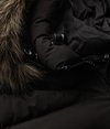 • Capuche bordée de fausse fourrure amovible